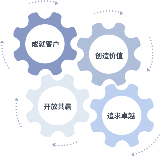 成就客户是一切决策的出发点,创造价值是衡量所有工作的标准,追求卓越是人生就是博做事做人的态度,开放共赢是人生就是博的格局也是最终的结果。价值观的齿轮环环相扣,推动着组织里的每个人不断向前。
